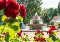 Nehmen Sie Platz im Schatten alter Bäume oder wandeln Sie in einem Meer von Duft und Farben. Genießen Sie eine Pause im Café an den Wasserspielen oder im Restaurant »Rosenflair«.