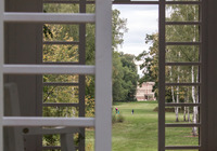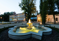 In der Nähe von den Teichen sind zwei wichtigste Parkattraktionen, die Schlossruine und wieder aufgebaute Orangerie. Die Ruine wurde abgesichert und ist jetzt für Besucher zugänglich. In der Orangerie gibt es ein Café, wo Sie sich einen aromatischen Kaffee und einen leckeren Kuchen oder ein Dessert ergötzen können. Im Sommer kann man sich auch im Rankgitter entspannen, das die Orangerie mit dem Schloss verbindet. Wenn Sie auf dem Schlosshof stehen, ist es unmöglich zwei Brunnen zu übersehen. Der repräsentativste ist der Brunnen mit der Nachbildung der Skulptur „Knabe mit dem Schwan”, der vor dem Haupteingang der Residenz steht. In der Umgebung der klassizistischen Orangerie befinden sich noch ein effektvoller Kreuzbrunnen und eine Nachbildung von einem antiken Sarkophag aus dem 3. Jahrhundert u. Z.