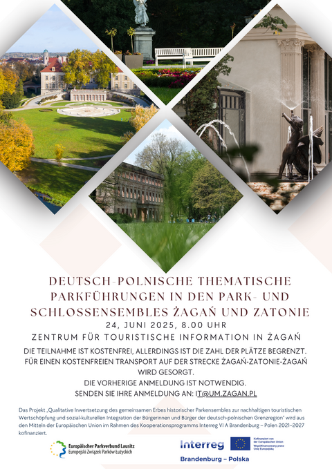 Das Projekt "Inwertsetzung Parkverbund" wird aus den Mitteln der Europäischen Union im Rahmen des Kooperationsprogramms Interreg VI A Brandenburg – Polen 2021–2027 kofinanziert.