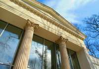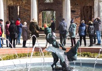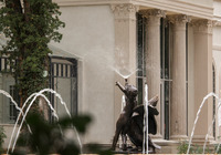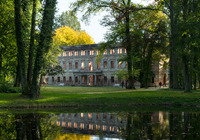 In der Nähe von den Teichen sind zwei wichtigste Parkattraktionen, die Schlossruine und wieder aufgebaute Orangerie. Die Ruine wurde abgesichert und ist jetzt für Besucher zugänglich. In der Orangerie gibt es ein Café, wo Sie sich einen aromatischen Kaffee und einen leckeren Kuchen oder ein Dessert ergötzen können. Im Sommer kann man sich auch im Rankgitter entspannen, das die Orangerie mit dem Schloss verbindet. Wenn Sie auf dem Schlosshof stehen, ist es unmöglich zwei Brunnen zu übersehen. Der repräsentativste ist der Brunnen mit der Nachbildung der Skulptur „Knabe mit dem Schwan”, der vor dem Haupteingang der Residenz steht. In der Umgebung der klassizistischen Orangerie befinden sich noch ein effektvoller Kreuzbrunnen und eine Nachbildung von einem antiken Sarkophag aus dem 3. Jahrhundert u. Z.