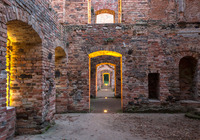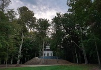 Wenn man in den Osten von der Schlossruine spazieren geht, kann man ein Aussichtsberg mit einer Grotte sehen. Auf seinem Gipfel ist eine schöne Laube (Rosentempel) gelegen. Von dort aus erstreckt sich ein wunderbarer Blick über die Wiese und die Schlossruine. Der Rosentempel ist auch perfekter Ort für romantisches Treffen.